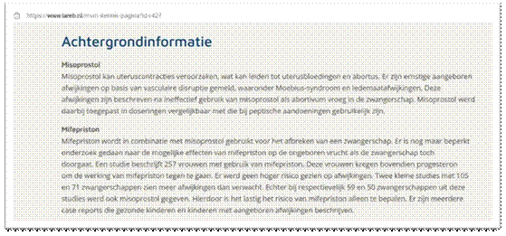 De Groene Amsterdammer schrijft voorts dat volgens het College ter Beoordeling van Geneesmiddelen het middel ernstige gevolgen kan hebben voor zowel de vrouw als haar foetus. Lareb[3], het meld- en kenniscentrum waar alle bijwerkingen van medicijnen worden geregistreerd, vermeldt op haar website echter wat anders. Bij een studie onder 257 vrouwen die dit middel na inname van de eerste abortuspil kregen toegediend, werd geen risico gezien op afwijkingen.